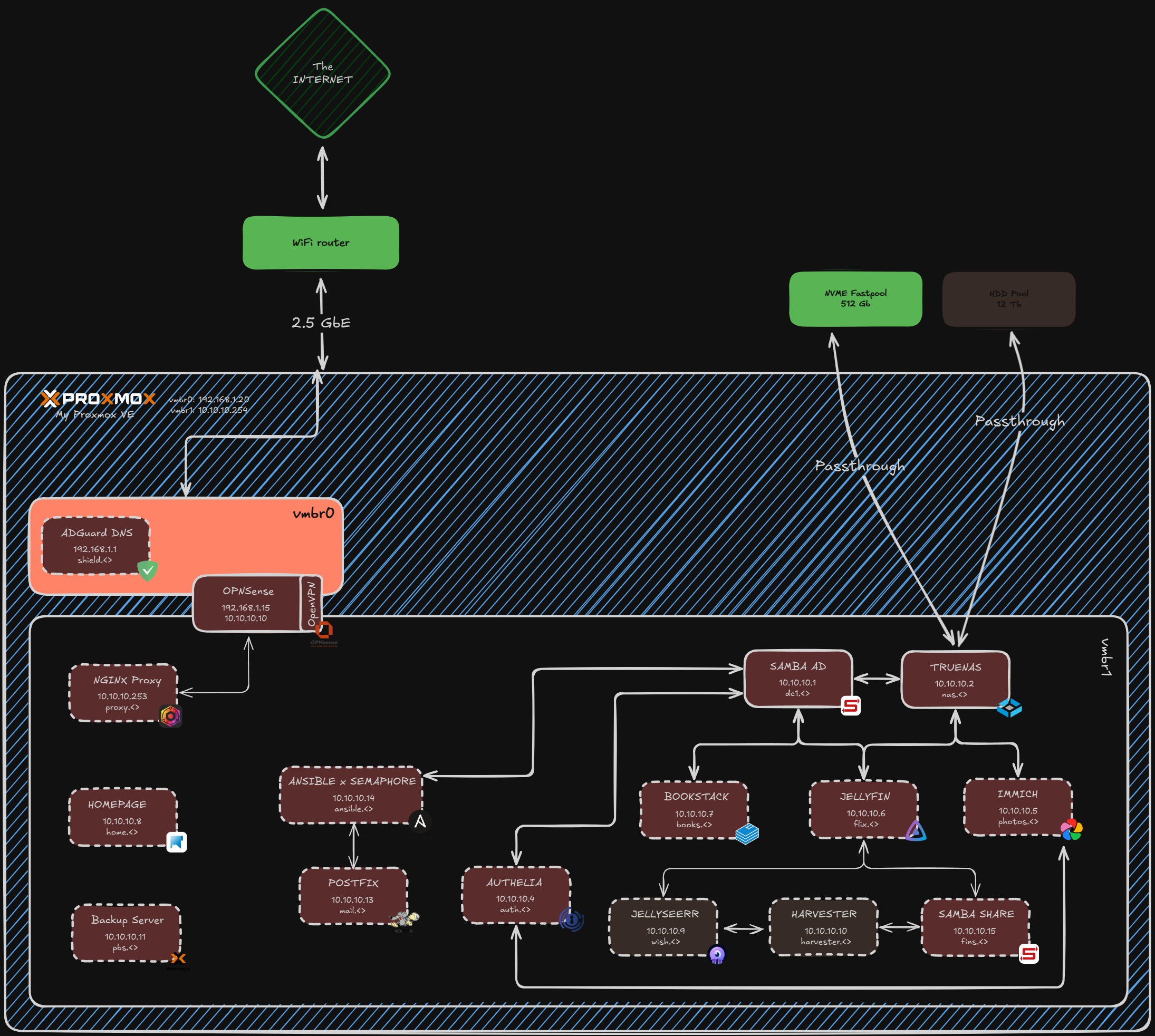 The primary goal of this project is to create a robust and flexible homelab environment for learning, experimentation, and self-hosting various services.