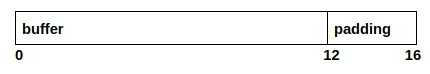 Note: this may not always be the case. With how the compiler and stack are configured, when variables are allocated, they would need to be aligned to particular size boundaries(e.g. 8 bytes, 16 byte) to make it easier for memory allocation/deallocation. So if a 12 byte array is allocated where the stack is aligned for 16 bytes this is what the memory would look like: