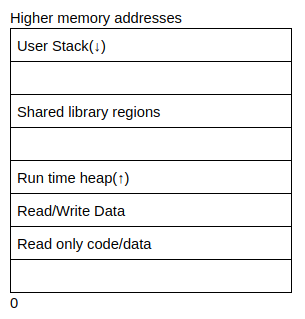 When a program runs on a machine, the computer runs the program as a process. Current computer architecture allows multiple processes to be run concurrently(at the same time by a computer). While these processes may appear to run at the same time, the computer actually switches between the processes very quickly and makes it look like they are running at the same time. Switching between processes is called a context switch. Since each process may need different information to run(e.g. The current instruction to execute), the operating system has to keep track of all the information in a process. The memory in the process is organised sequentially and has the following layout: