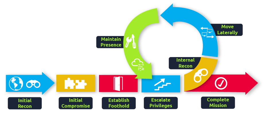 While many cyber kill chains reference lateral movement as an additional step on a linear process, it is actually part of a cycle. During this cycle, we use any available credentials to perform lateral movement, giving us access to new machines where we elevate privileges and extract credentials if possible. With the newfound credentials, the cycle starts again.